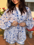 • Oversized relaxed-fit shirt with painterly blue motifs