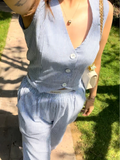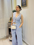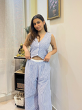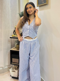 Meet your new summer staple – the Coastline Co-Ord. Crafted from breathable 100% linen, this effortlessly chic two-piece set features a structured waistcoat and relaxed pajama-style pants, all in dreamy blue and white ribbed tones. It’s the definition of casual luxe — perfect for airport days, brunches, beach strolls, or just lounging in style. Whether you’re vacation-bound or couch-cuddled, this set is your go-to for cool comfort with a polished twist
