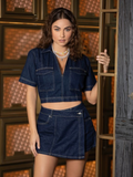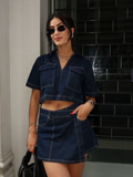 Denim Edge Wrap Skort Set