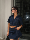 Step into effortless elegance with our Denim Edge Wrap Skirt Set, inspired by classic denim tones but crafted in a smooth, lightweight fabric perfect for summer. The soothing navy blue co-ord is elevated with fine white thread detailing that mimics denim-bound edges. Featuring a flowy wrap skirt and a matching crop shirt, this set is your go-to for easy, breezy style — from vacations to brunches and everything in between.