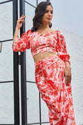 • Heart neckline crop top with puff sleeves and elastic at shoulders for a perfect fit.