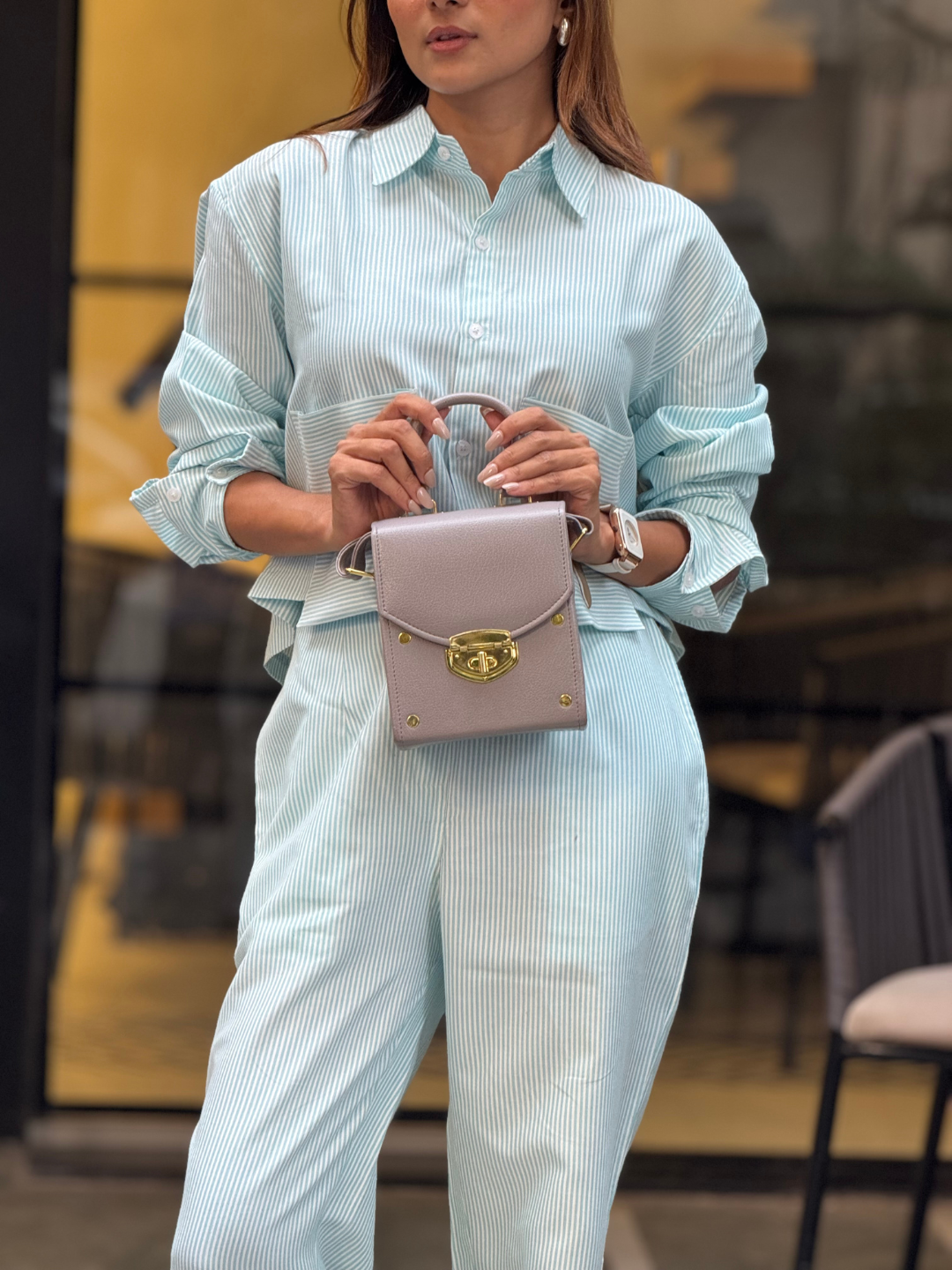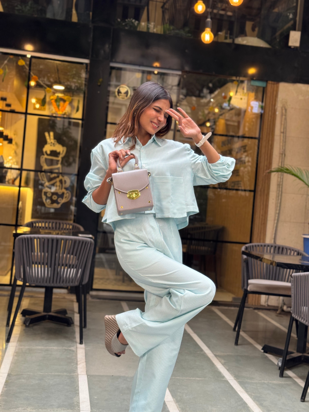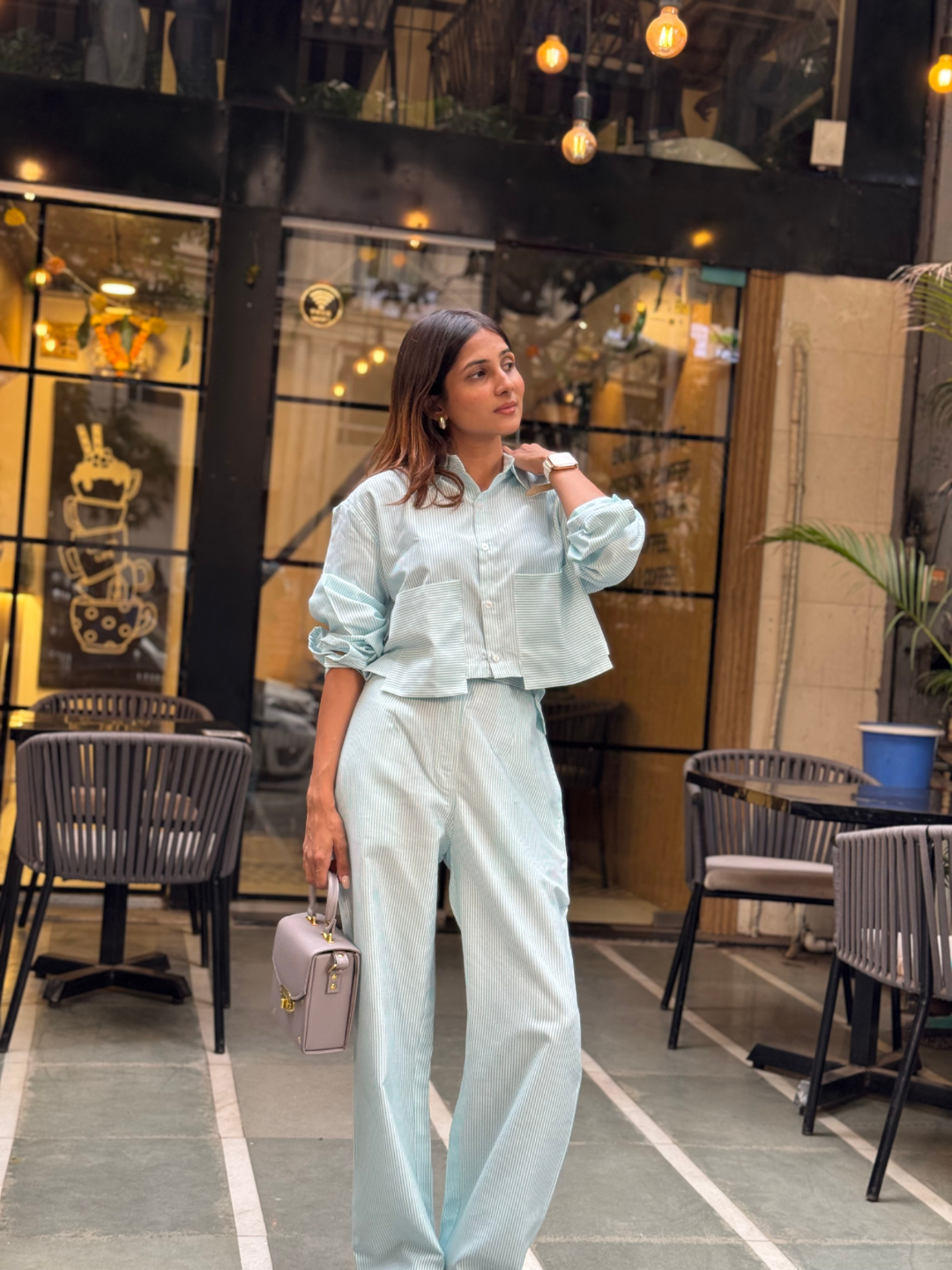 Elevate your wardrobe with the Greenlight Getaway Co-ord Set — a versatile two-piece made from 100% cotton that blends comfort with statement style. In a refreshing green and white palette, this set includes a cropped shirt and matching pants, perfect for everything from workdays to weekend escapes.