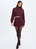 The Mulberry Muse Corduroy Co-ord Set brings together the boldness of contemporary design with the cozy charm of corduroy. Crafted in a rich mulberry hue, this co-ord features a structured cropped jacket and a statement pleated mini skirt — creating the perfect blend of sass and sophistication.