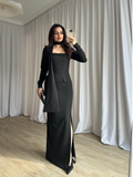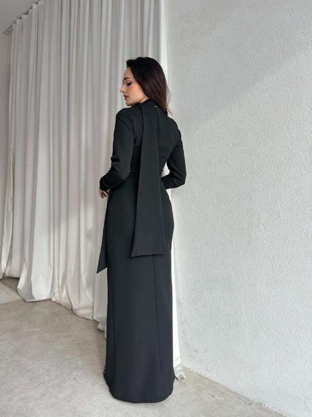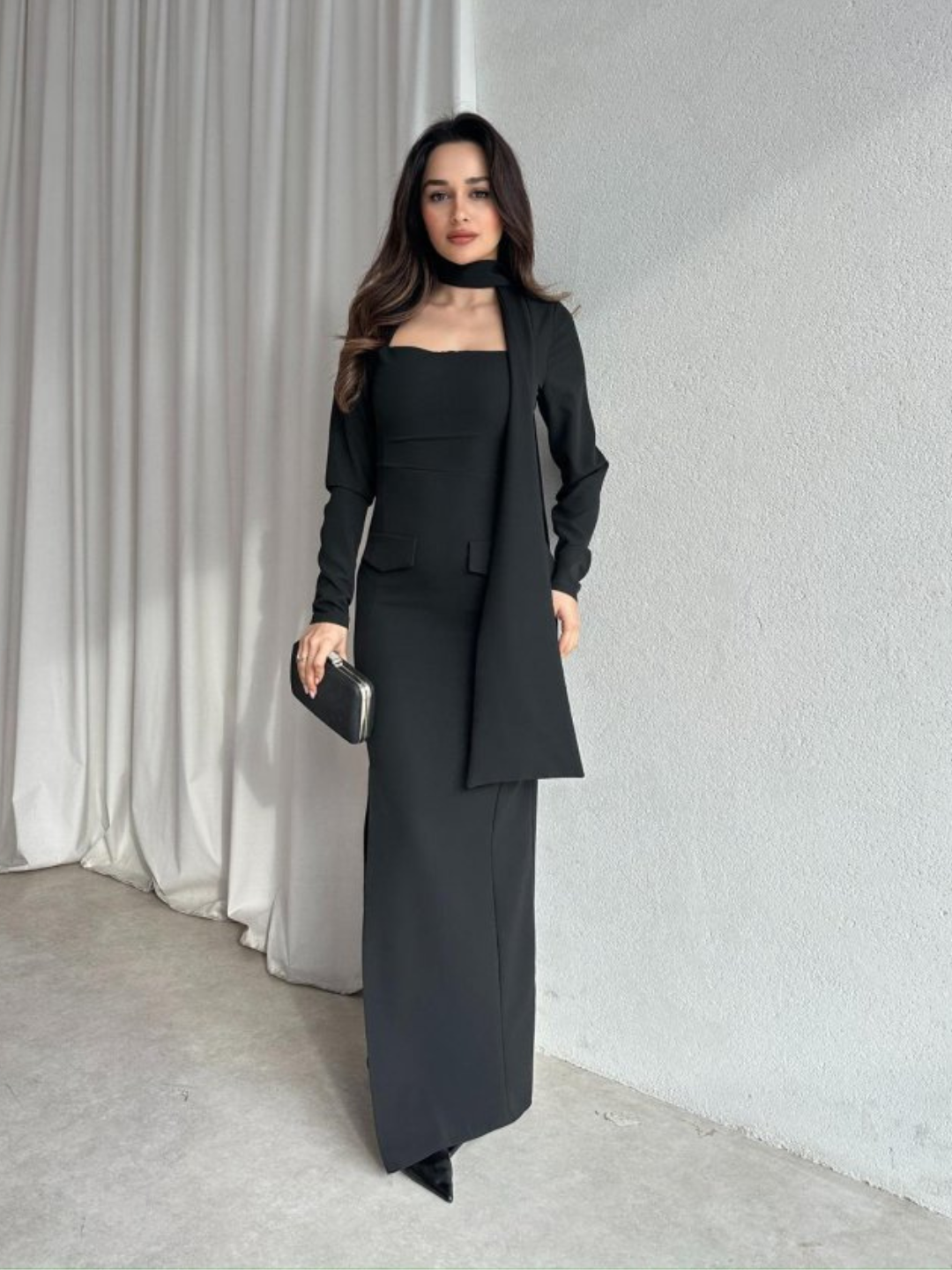 Noir Veil Maxi Dress with Scarf