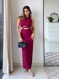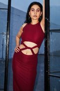 Embrace a classy look with a sleek high ponytail and a clean, sophisticated makeup palette featuring smokey eyes. Complete your ensemble with a pair of chic pencil heels to elongate your silhouette and add a touch of elegance. Carry your essentials in a sleek black tote for practicality and style. With the Nora Trinity Bodycon Dress, you'll exude confidence and sophistication, ensuring all eyes are on you at any event.