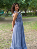Crafted from pure breathable cotton, this dress is all about comfort-meets-charm. The delicate frill detailing on the straps adds a playful touch, while the bobbin elastic on the front and back hugs your silhouette just right, giving you that flattering, elegant fit without compromising on ease.