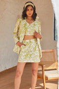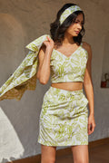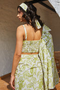 Elevate your vacation style with the Songerie Lush Skirt Set, featuring a charming bralette crop top and shrug ensemble. Designed for beachside escapades, resort lounging, or leisurely vacation strolls, this outfit embodies effortless elegance. With its impeccable silhouette and captivating spring-summer patterns, the Songerie Lush Skirt Set is the epitome of summer chic. Whether you're soaking up the sun on sandy shores or exploring exotic destinations, this ensemble ensures you do so in style.