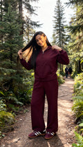Wine Fleece Jogger Set with Hoodie